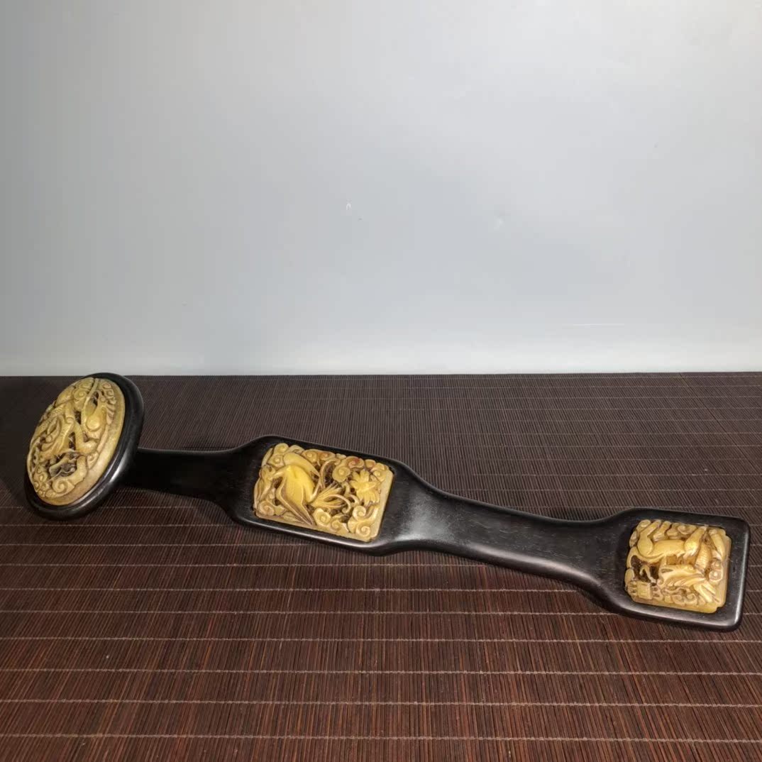 Ancient Play Miscellaneous Collection Wooden Ware Collection Treasured Little Leaf Purple Sandalwood Inlaid With the Jade Ruyi Pendulum