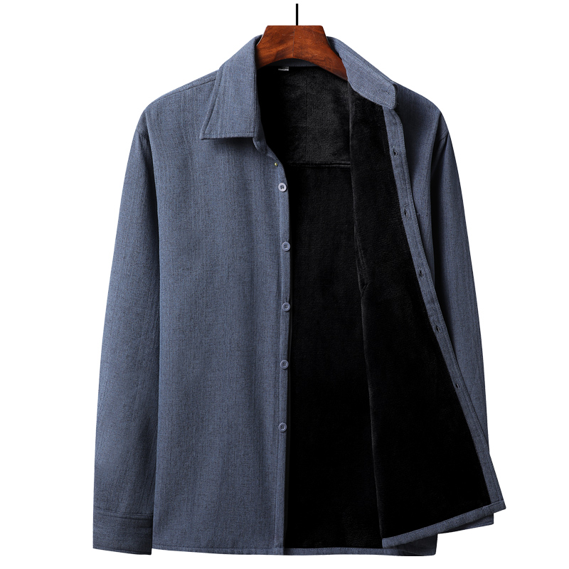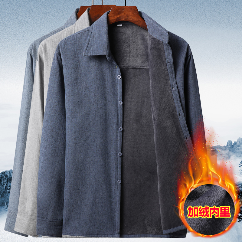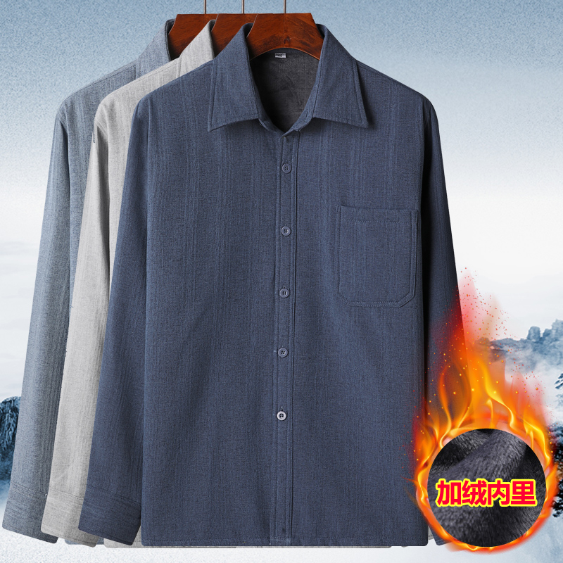 Autumn Winter Dress Daddy Long Sleeve Shirt Plus Suede Thickened Middle-aged Man Grandpa Blouse Shirt Cotton Linen 60-70 years old