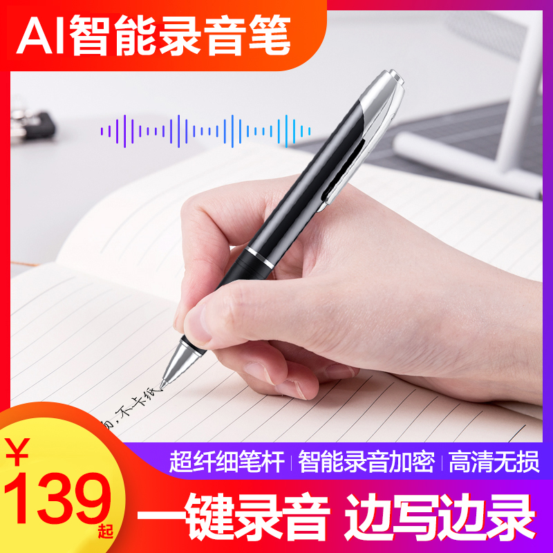 (AI Smart) New Section AI Intelligent Recording Pen Professional HD Noise Reduction Simultaneous Interpretation Use of Students Pen-type Voice-to-Text Recording Device Large-capacity Business Meeting