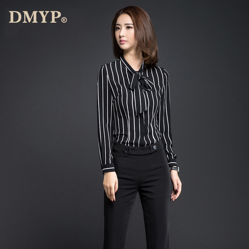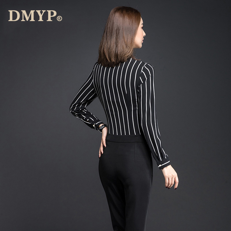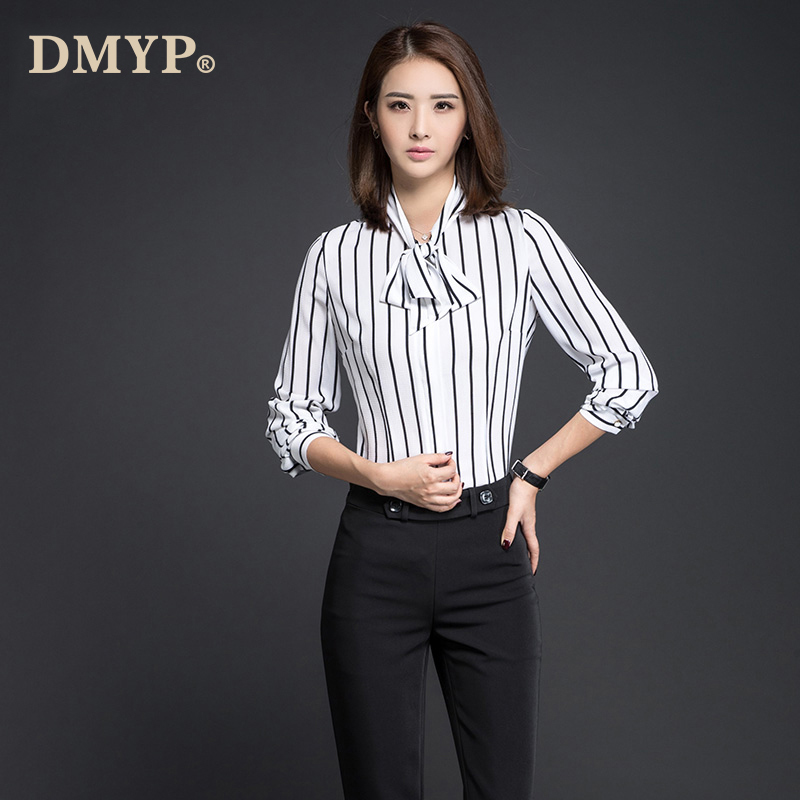 Professional shirt women's work clothes temperament long-sleeved white striped shirt black top 2020 new teacher interview