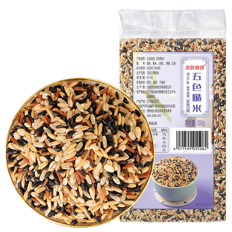 Five Valley Manifesto Five Color Brown Rice 1 Catty 500g Northeast Low Fat Low Sodium Miscellaneous Grain Rice Black Rice Red Rice Vacuum Dress