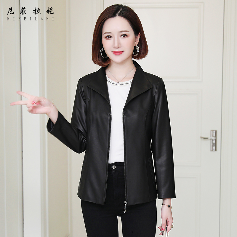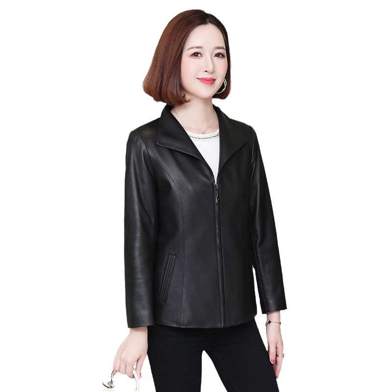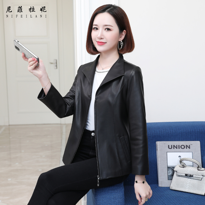 Leather clothes woman short spring autumn 2022 new middle aged mother close-up sheep peeler car clothes genuine leather leather jacket jacket