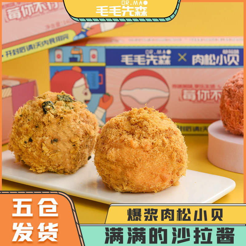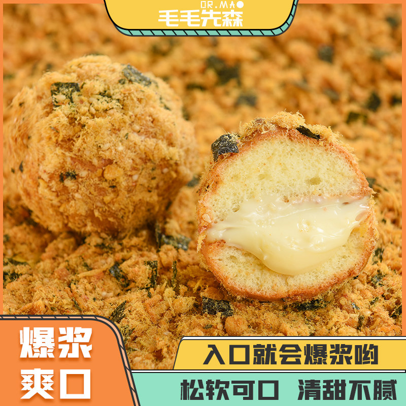 Maomao Xian Sen meat floss Xiao Bei burst pulp Breakfast bread cake snack Net red Strawberry Salty egg yolk flavor Fresh and freshly made