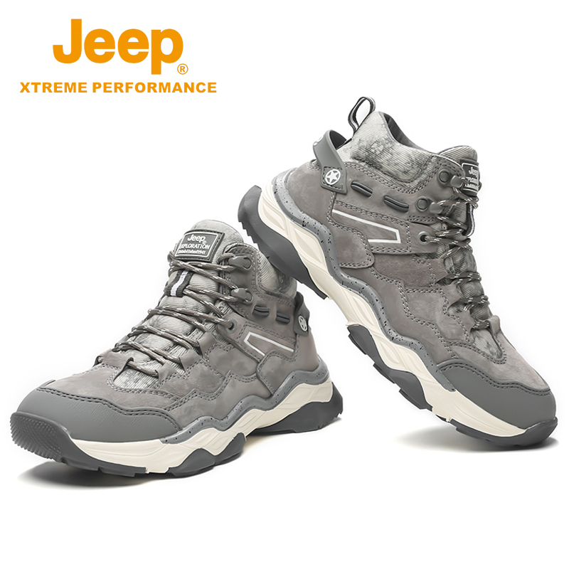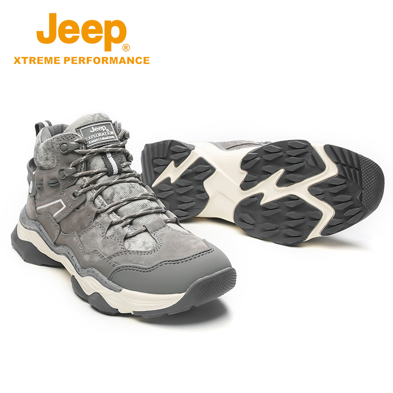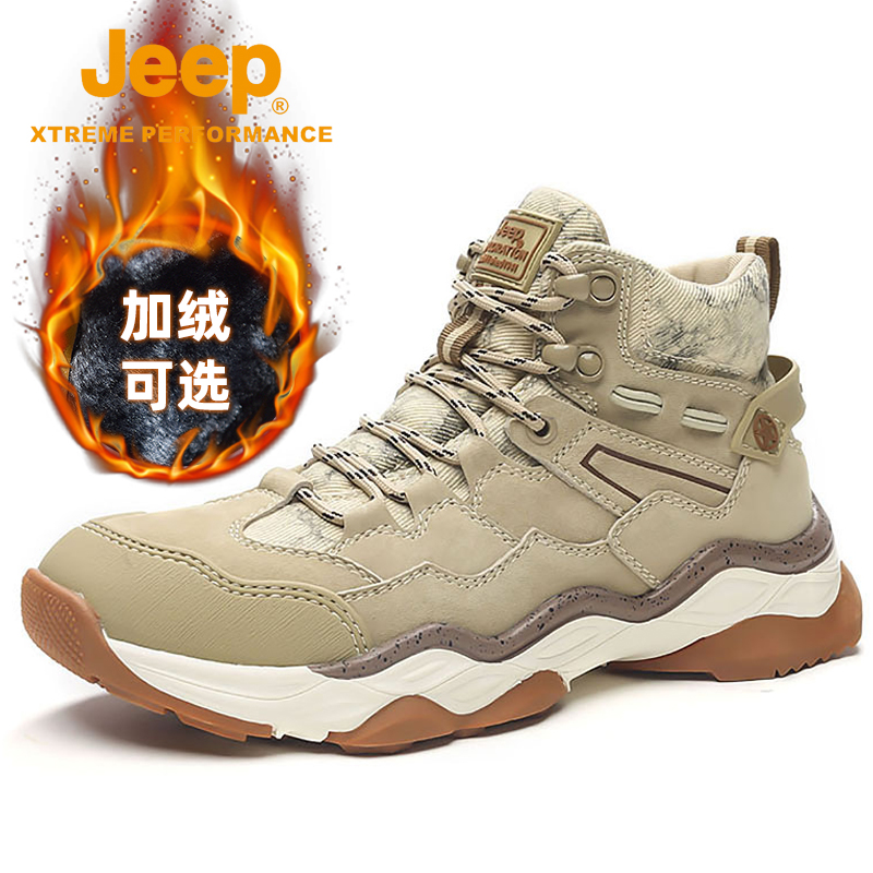jeep men's shoes winter new casual high-top shoes men's outdoor non-slip mountaineering plus velvet warm cotton shoes tide