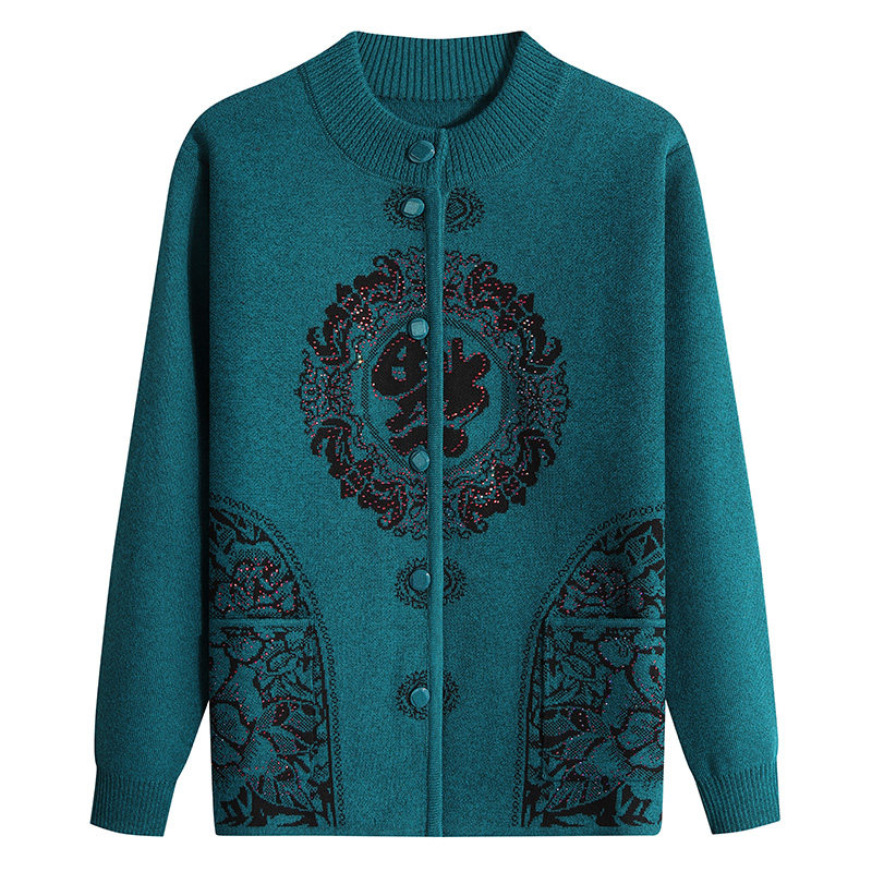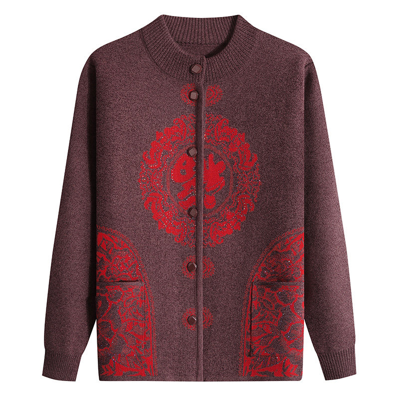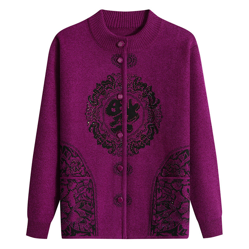 Middle-aged and elderly women's sweater fu zi autumn and winter sweater mother spring old lady grandmother Tang cardigan