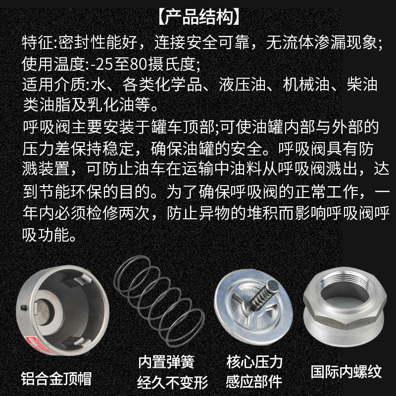 Oil tanker aluminium alloy external suction valve internal thread breathable cap emptying ventilation valve flange type petrol car fitting
