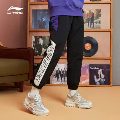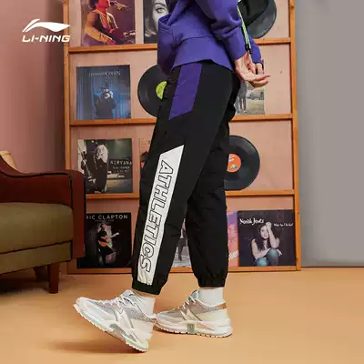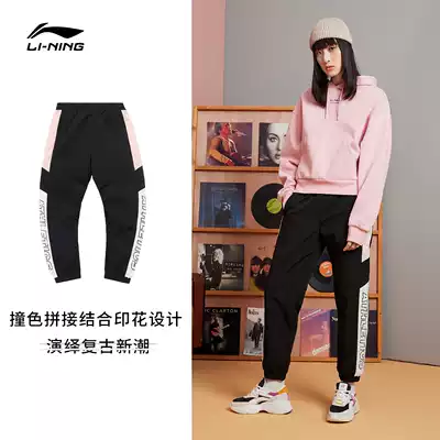 Li Ning Sports Pants Women's Autumn Sports Fashion Women's Fashion Splice Contrast Color Pants Black Corset Sports Pants