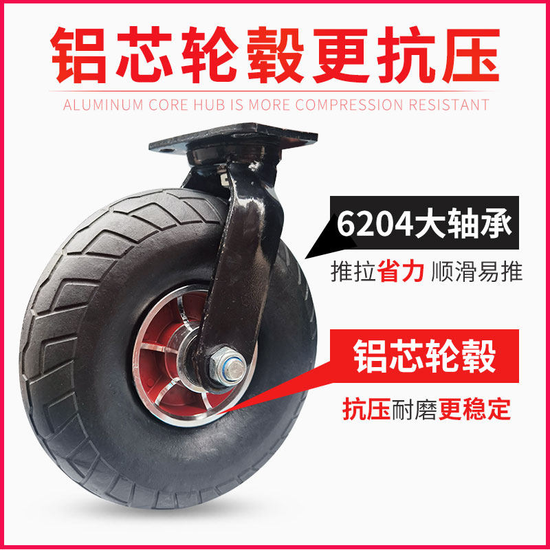 Zide 10-inch solid foam rubber wheel pusher wheel aluminum core wheel shock-absorbing mute caster field dirt road reel