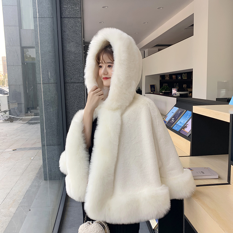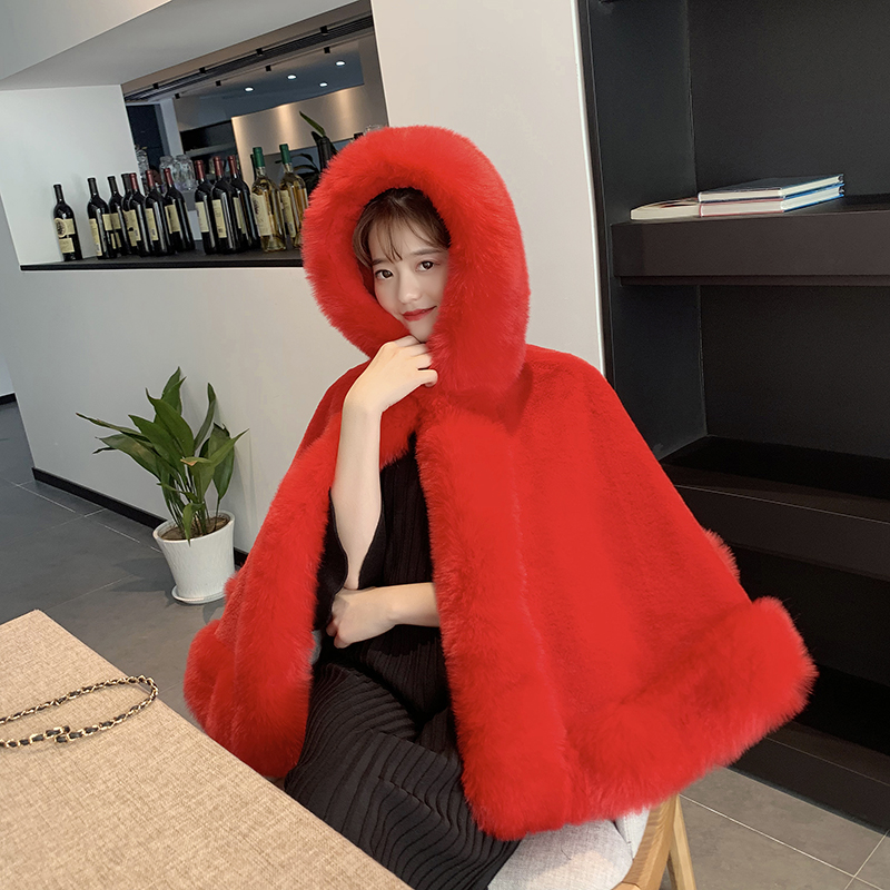 Wedding shawl women's autumn and winter imitation fox fur collar red cape cloak coat for wedding outside with fur coat thickening