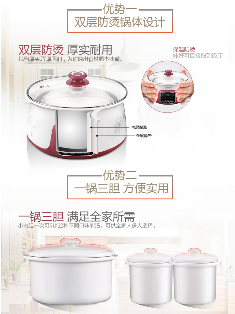 Supoir small electric saucepan YC812 Home Mini Multi-functional electric saucepan ceramic water-free saucepan soup pot