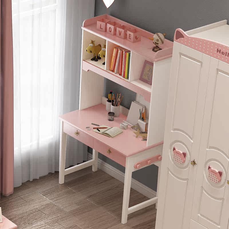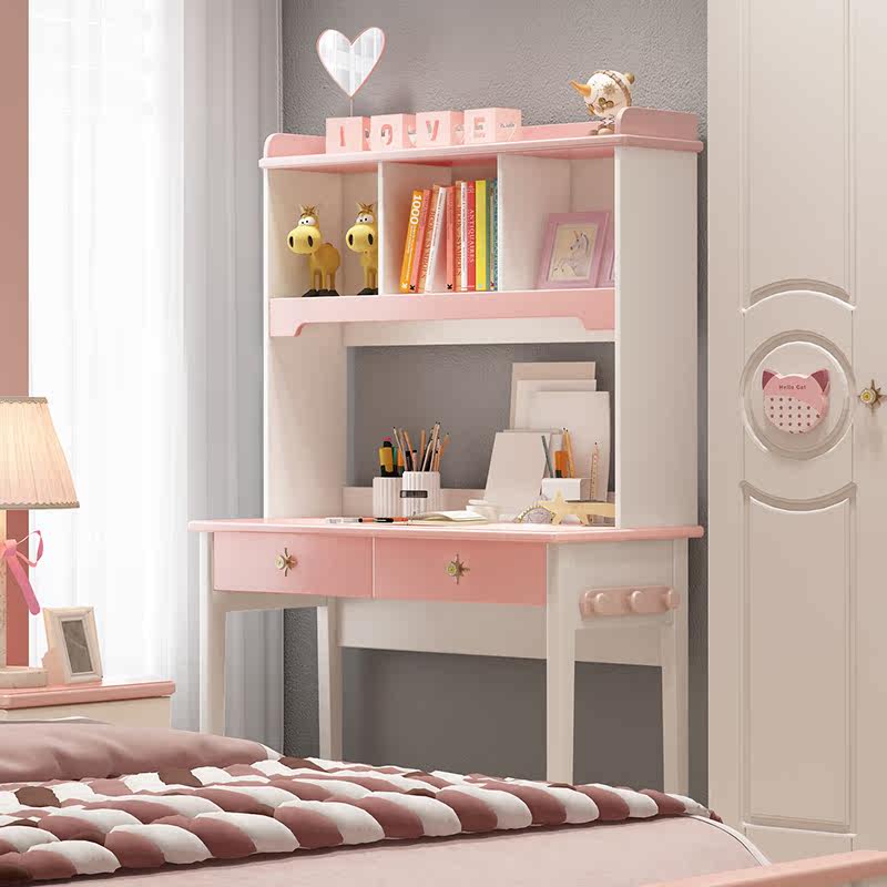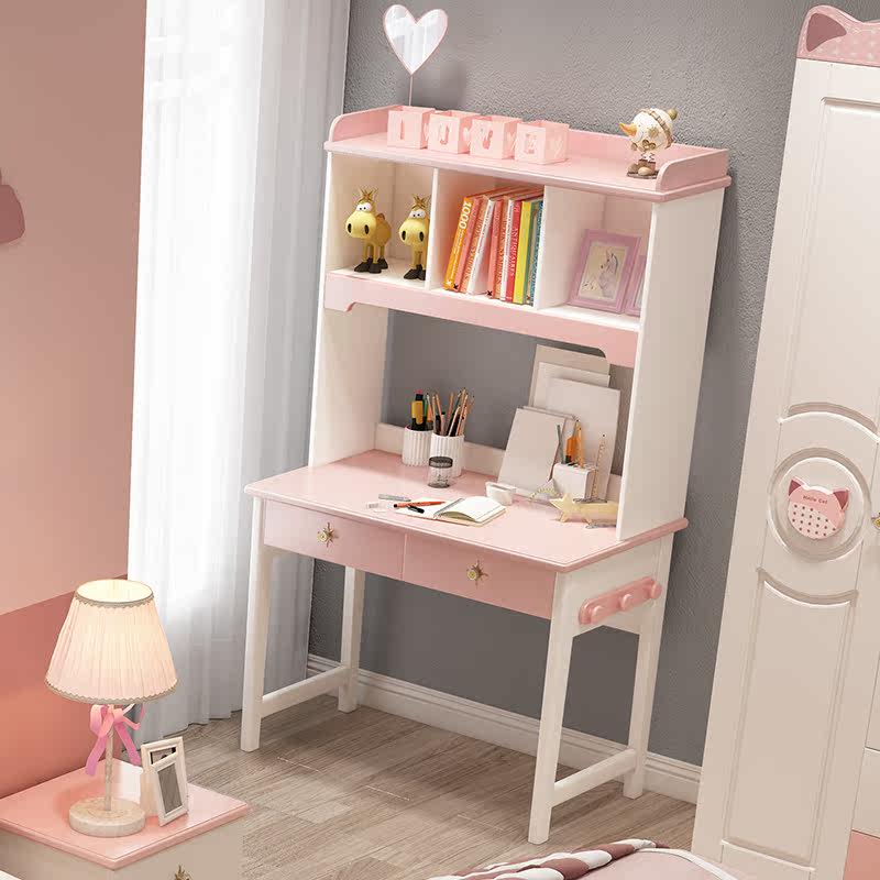 Children's desk and bookshelf combination small apartment desk solid wood home middle school students and children all-in-one desk bookcase