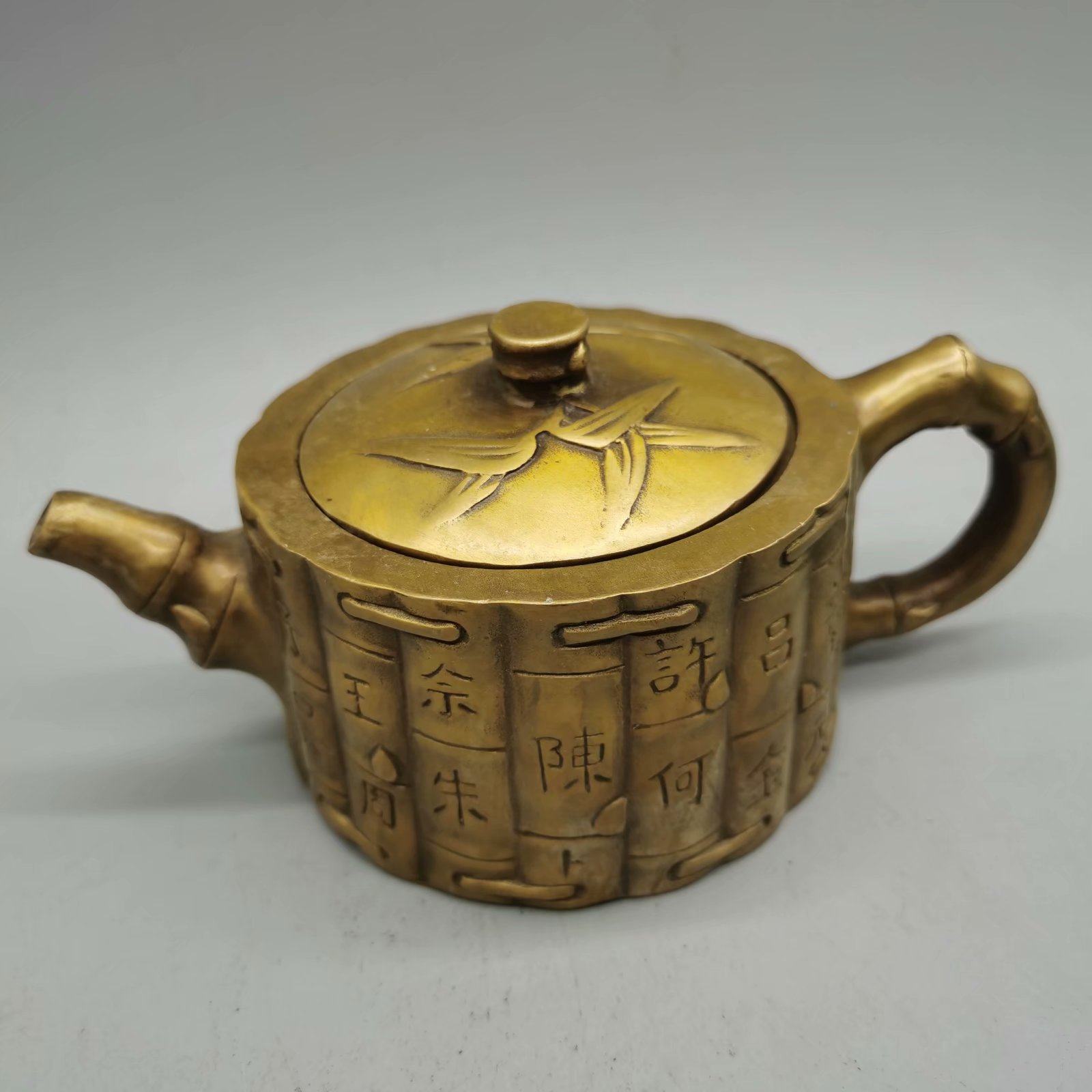 Hundreds of family names pot bamboo pot wine pot kettle old-fashioned retro copper pot Republic of China copper ware home office decoration ornaments