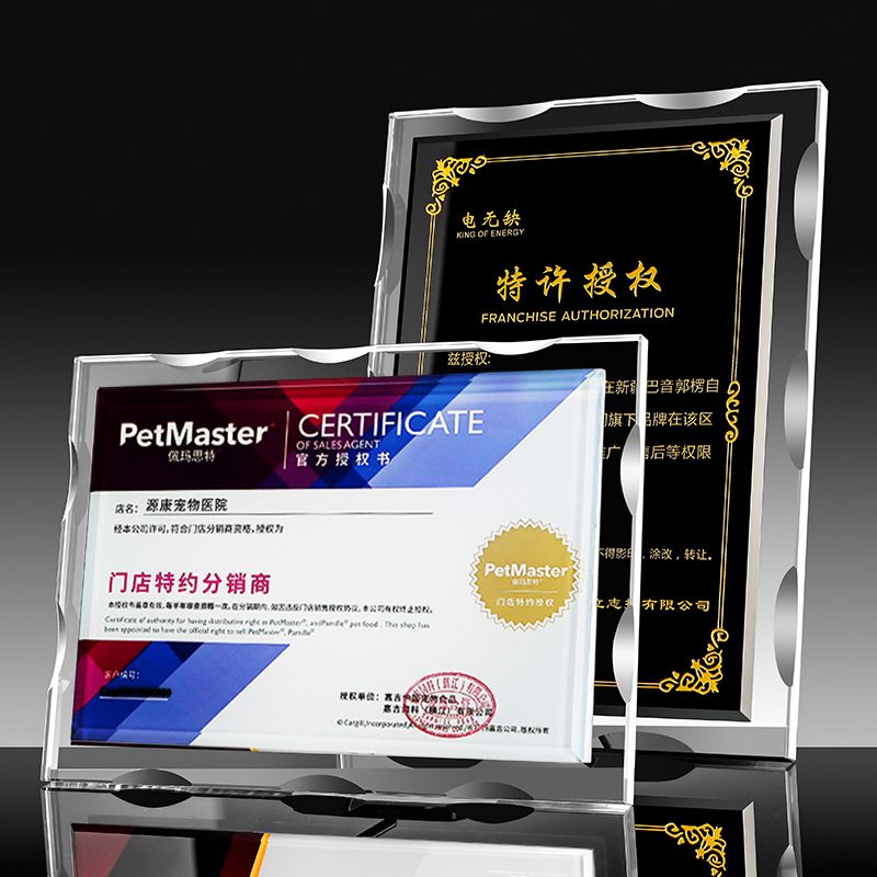 Crystal Honor Plaque to make anti-walnut medal customization to be franchised agent dealer authorization card customization