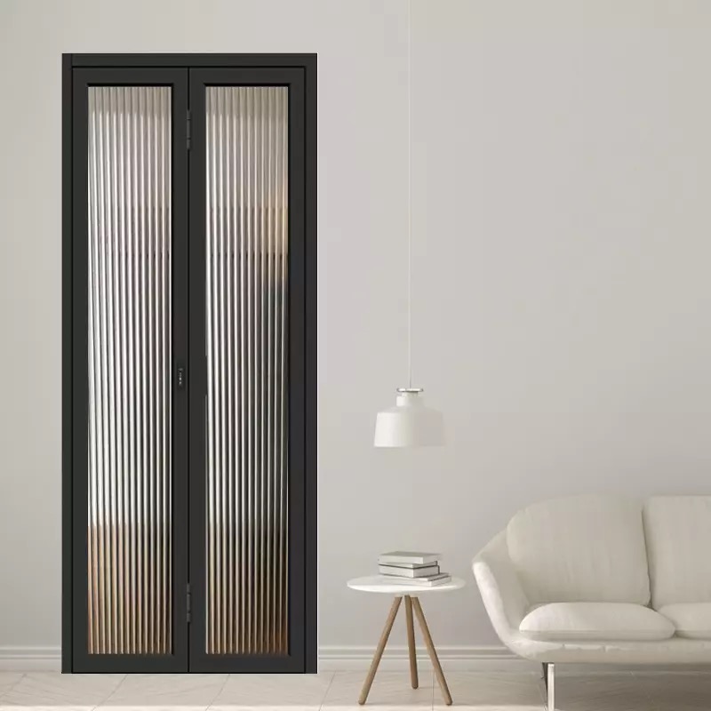 Powder room folding door kitchen sliding door titanium magnesium aluminum alloy toilet door narrow side hanging wheel no lower rail glass sliding door