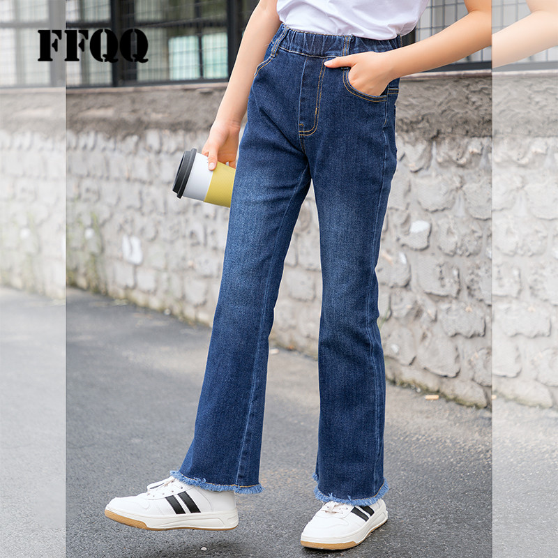 Girls wide-legged pants 2022 new spring autumn outwear casual autumn clothes children CUHK Straight Drum Jeans Sub Fall