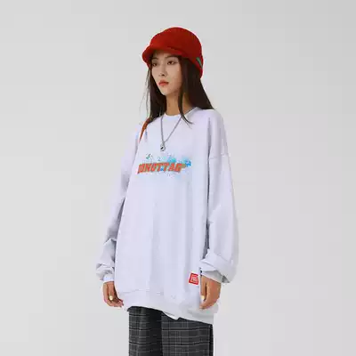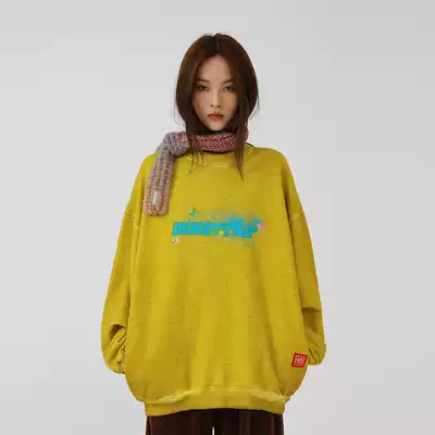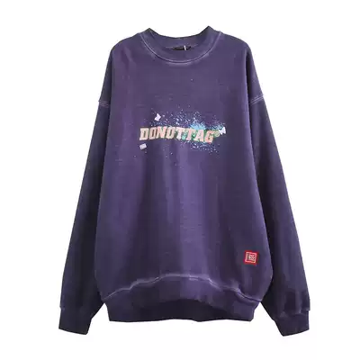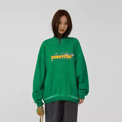 DNT Korean fire fried color big upgrade dirty wash process old vintage letter printing long sleeve collar thick cotton T