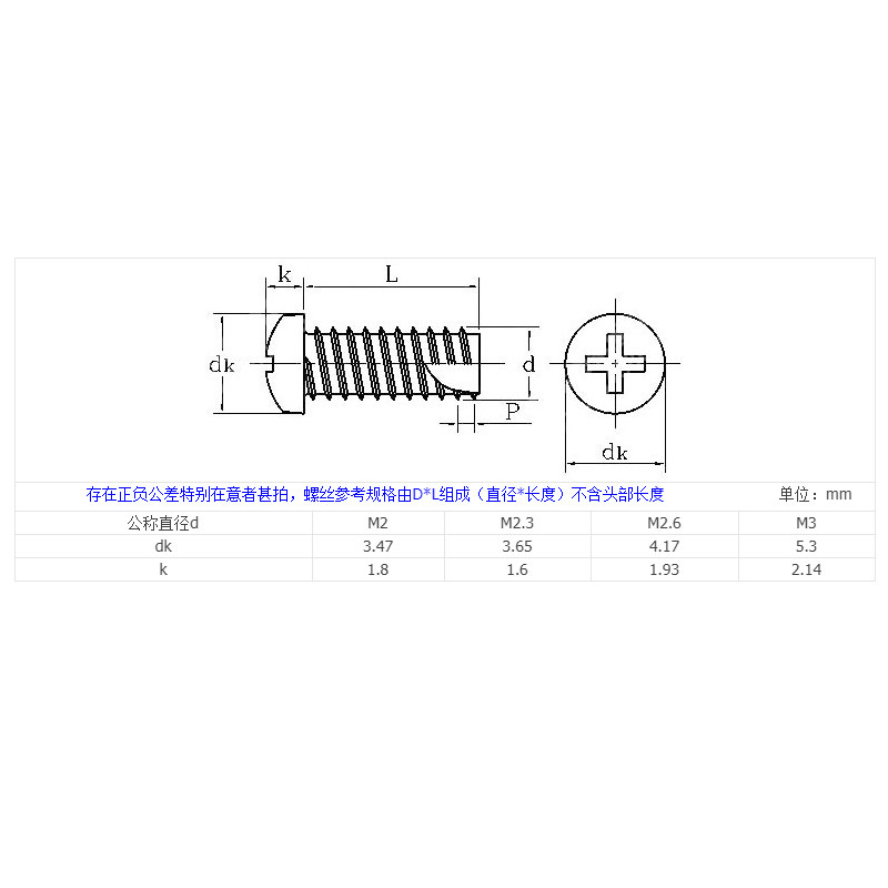 M2M3M4M5 304 stainless steel cross - head cut tail self - tapping screw PT slot tail head small screw