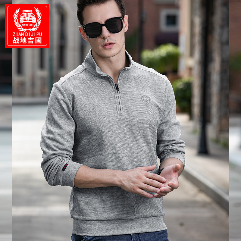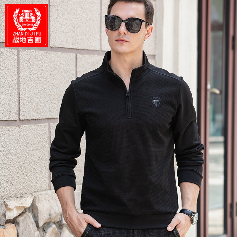 2021 new spring clothing casual blouse male collar casual loose jacket head semi-high neckline pure cotton long sleeve T-shirt male tide