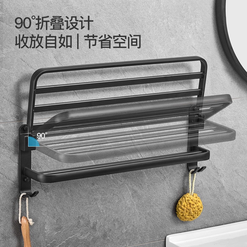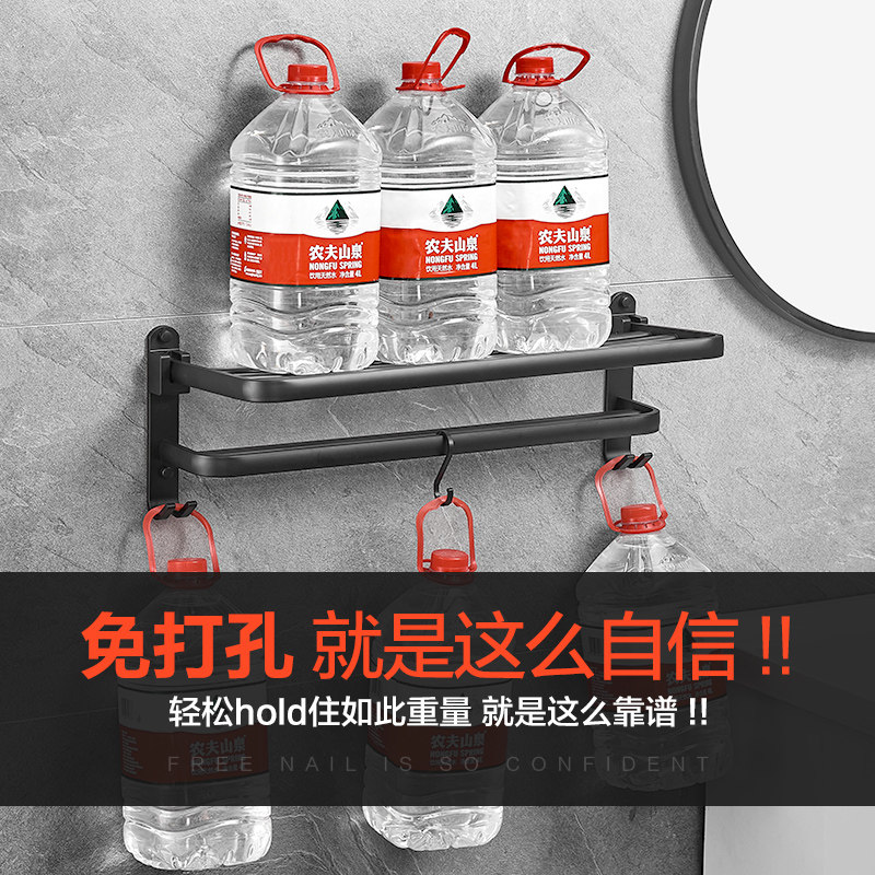 Towel rack space aluminum free punch shelf black bath towel rack toilet bathroom bathroom hardware bathroom pendant set