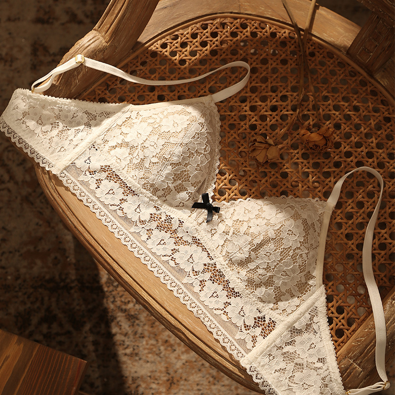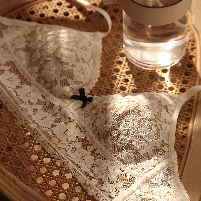 Baoxian Yan French underwear female summer small chest super thin chest appearance small steel ring sexy lace bra triangle