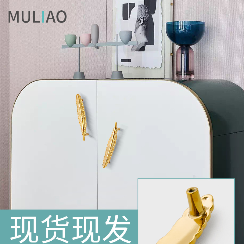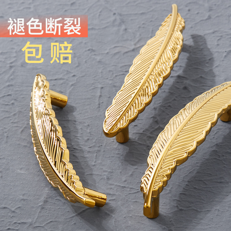 Brass personality feather handle Nordic furniture hardware gold light luxury wardrobe cabinet holistic cupboard door handle