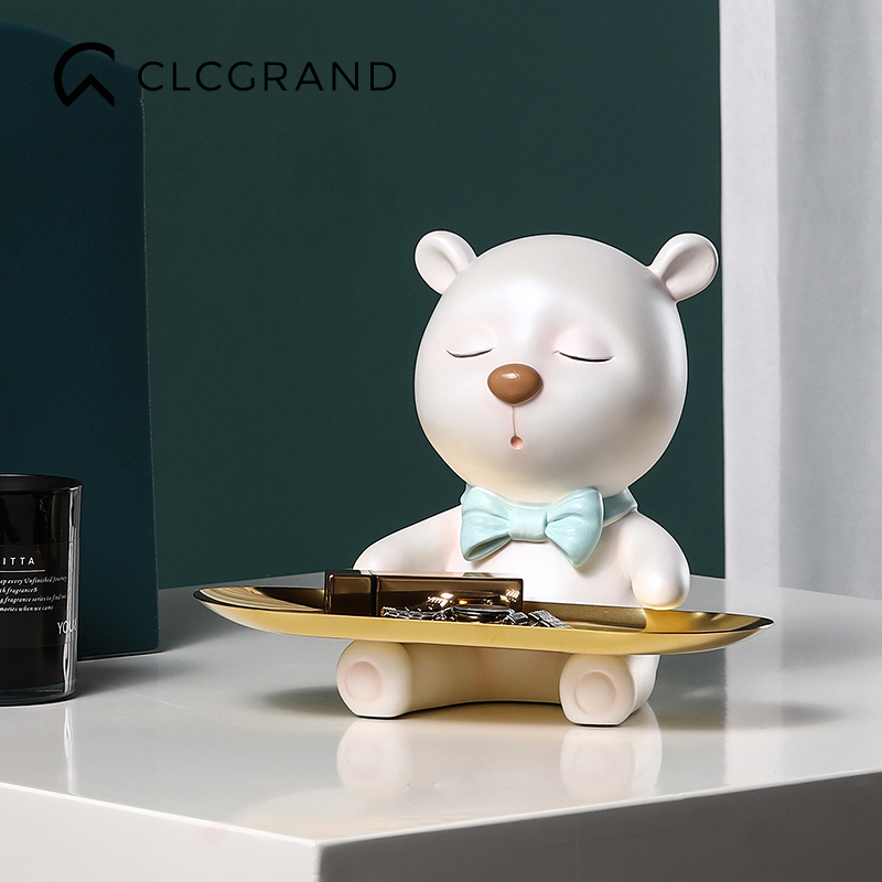 Creative bear tray decoration entrance key storage soft decoration Home living room Bedroom dried fruit plate Light luxury style