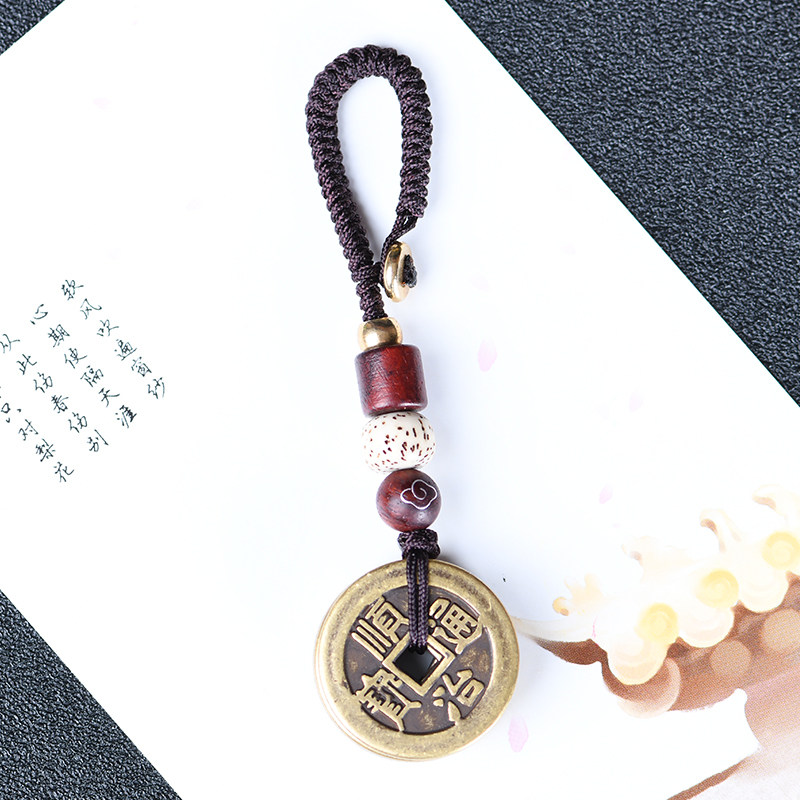 To Fu Hand Woven Pure Copper Five Imperium Money Car Key Button Car Ornament Men And Women Creative Gifts