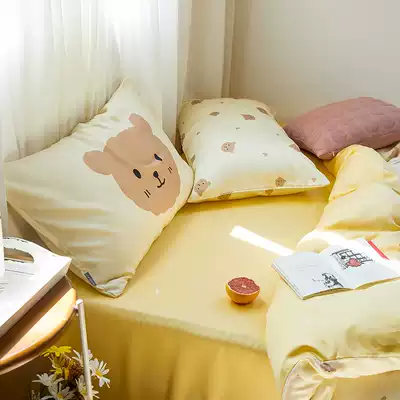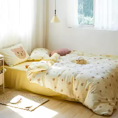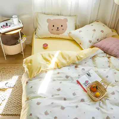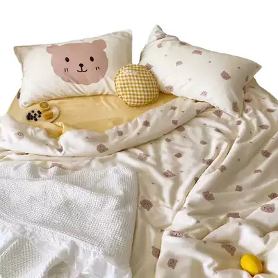 (Toyama Strawberry) Cute cartoon bear 60 Tencel Four Piece Set Silky Cool hipster quilt cover