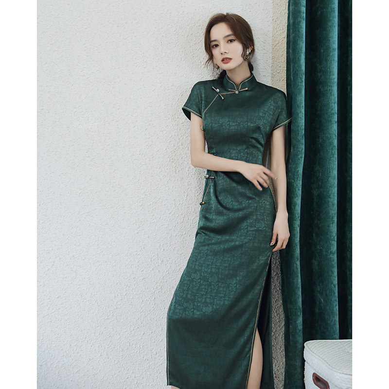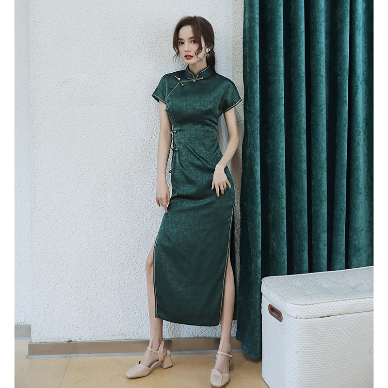 Improved green cheongsam retro temperament old Shanghai young girl high-end traditional dress summer long version of women