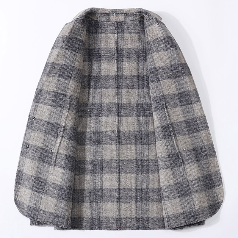 Two-sided, big coat men's short English Inn Wind fashion checkered small suit Korean version of body wool Ssuit jacket