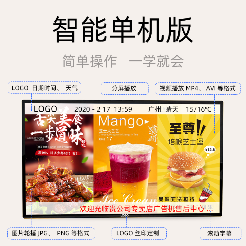 43 Inch Wall-mounted Advertising Machine Milk Tea Shop Catering TV Display