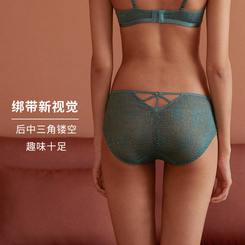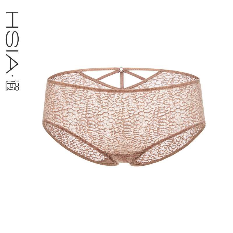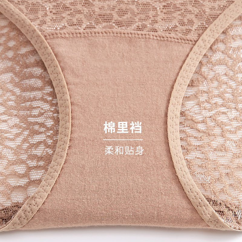 HSIA BAO BAO Wee Lace Mid-Waist Four-corner Pants Woman Thin breathable cotton crotch Sexy strap hollowed-out lady Underpants