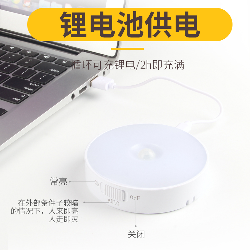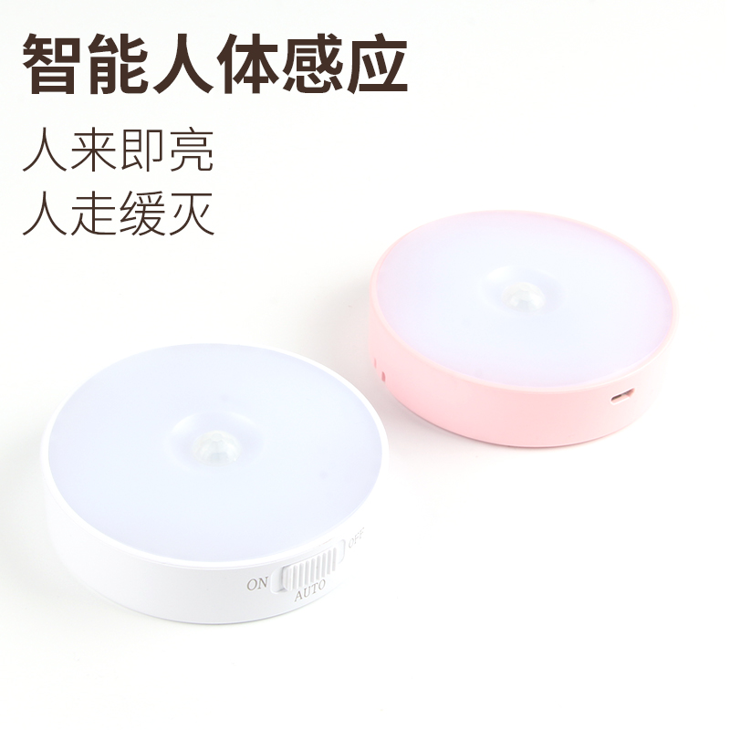 Wireless smart human body induction LED small night light with switch stairs gangway corridor wall light up night home rechargeable mobile automatic bright patch wall suction top light kitchen bedroom integral cupboard headboard
