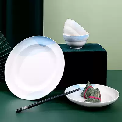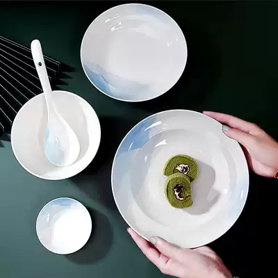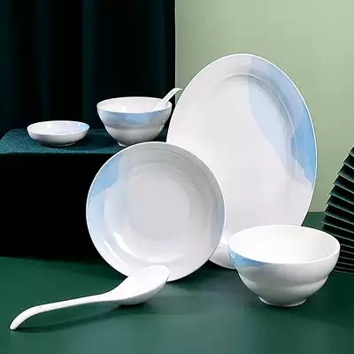 Pine hair ceramic cutlery set household simple dishes set Chinese hipster sky blue bowl plate combination