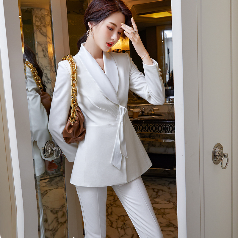 Net Red Fall new Korean version Body White Suit Jacket Lady Yingren Wind Design Sensation Little Crowdsuit Suit