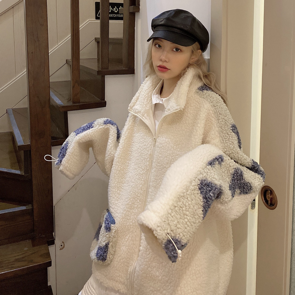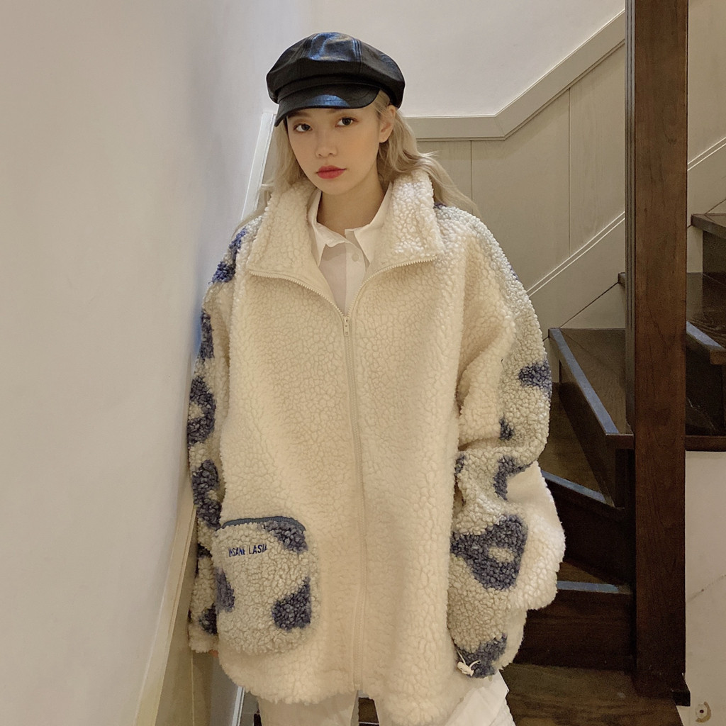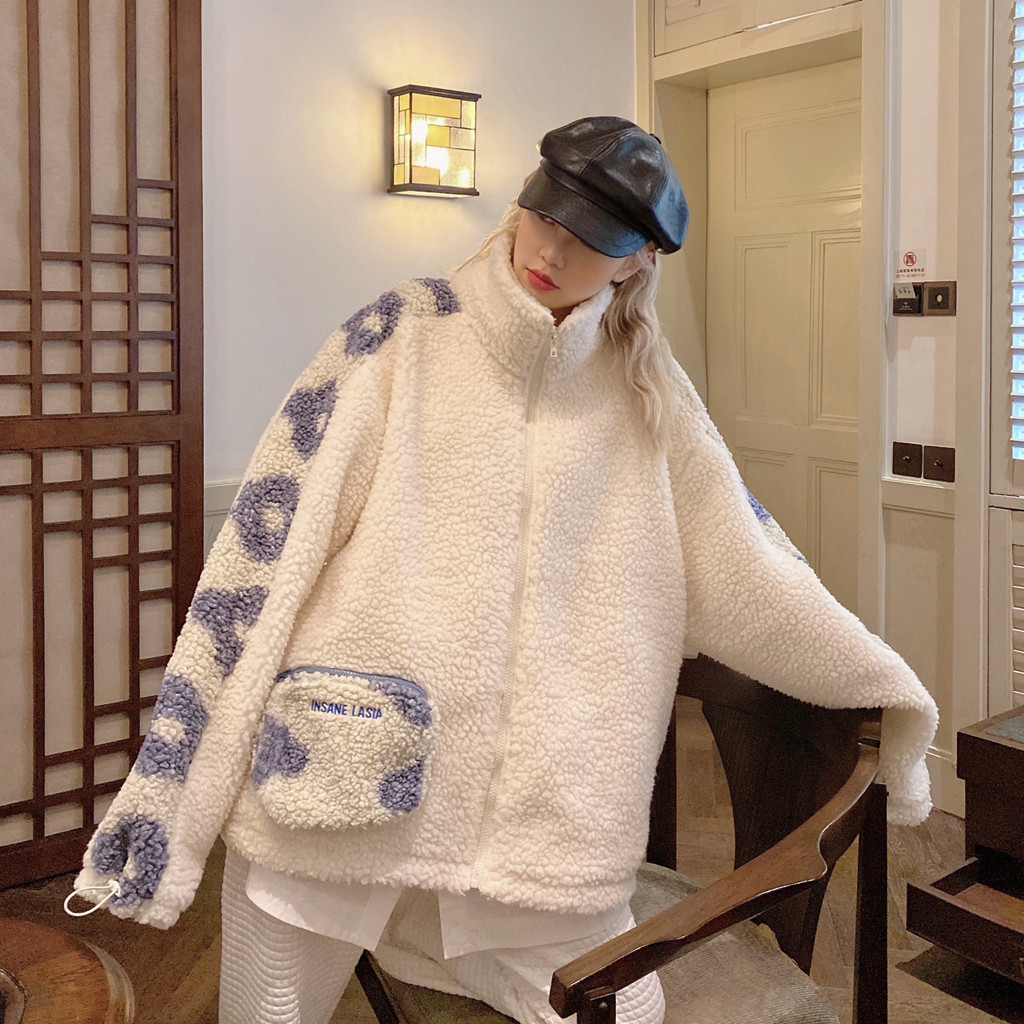 INSANE LASIA original color block floral sherpa jacket trendy brand men's and women's couple jacket INSNLASIA