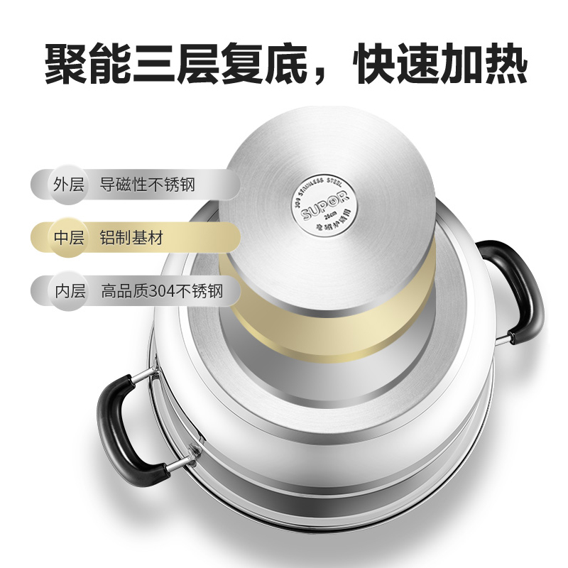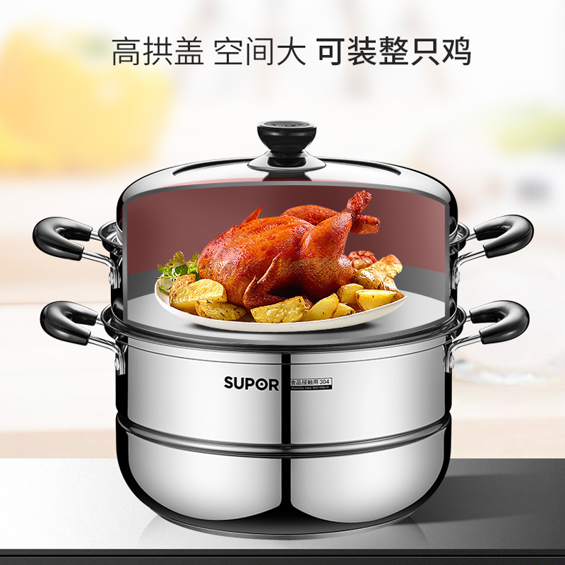 Supor steamer household 304 stainless steel steamer thickened double-layer large cage drawer induction cooker household gas stove
