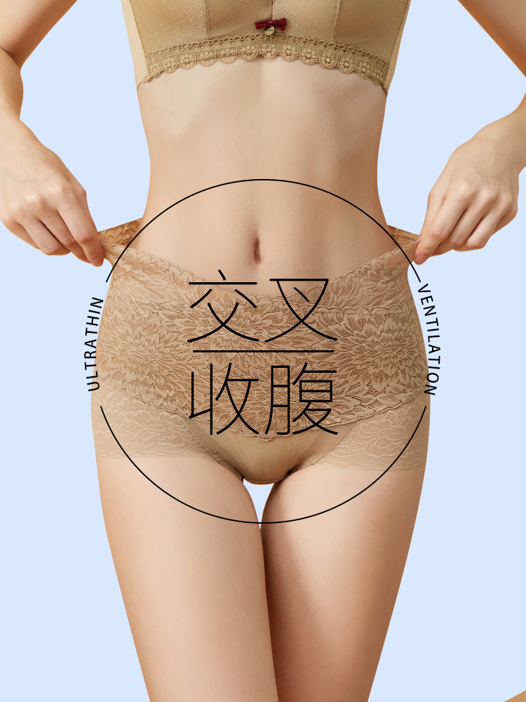 High waist close-up underpants female summer slim fit small belly powerful lace tip-top lady Sexy Flat Corner Pants-Taobao