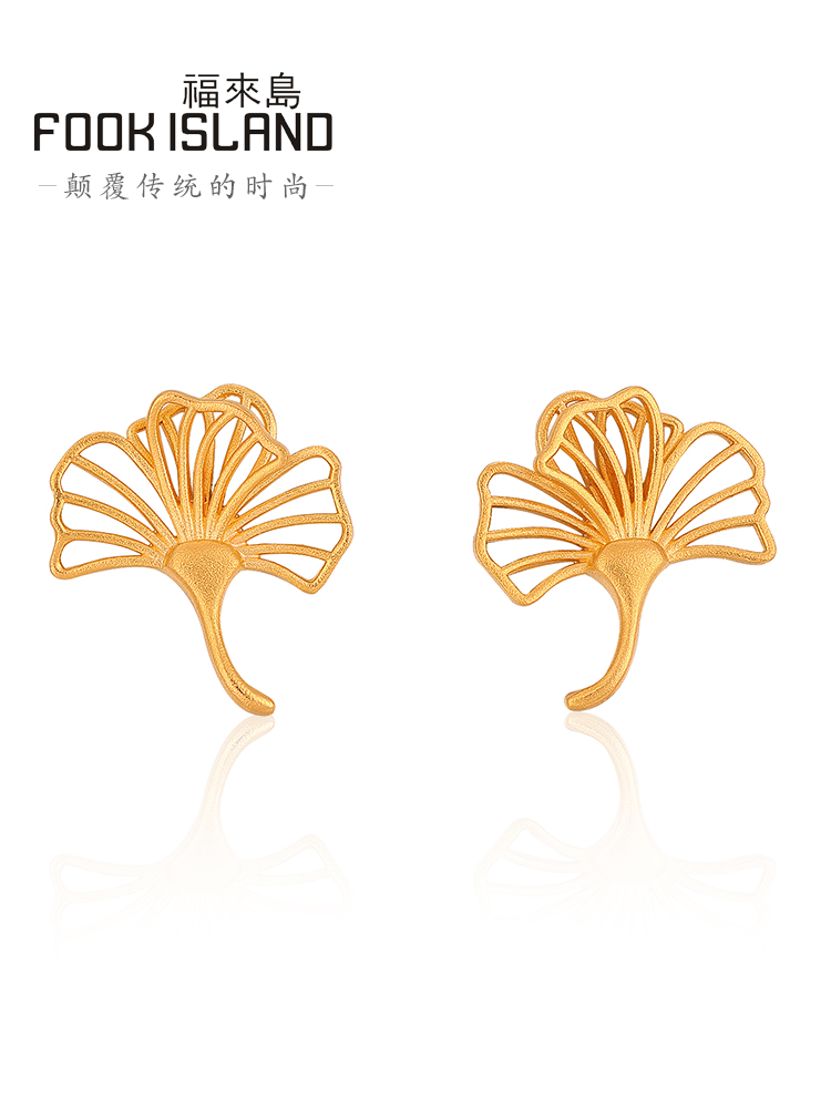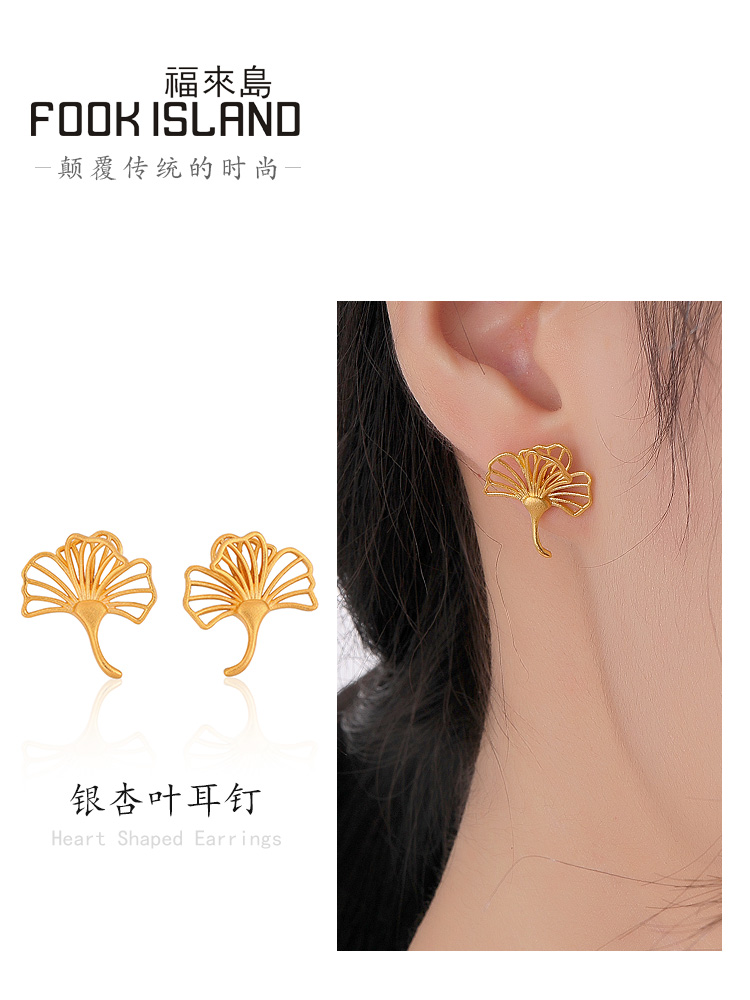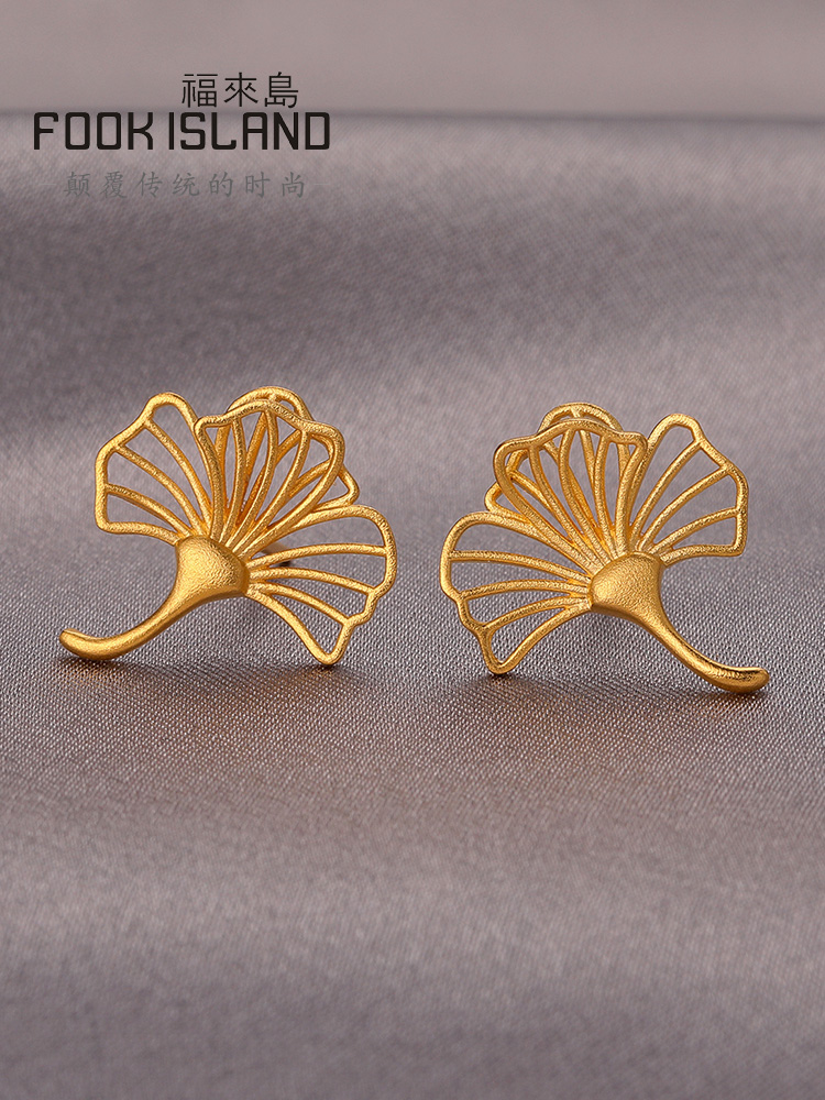 Fulai Island gold earrings pure gold 999 ginkgo leaf earplugs commuter earrings ancient gold earrings exquisite earrings female
