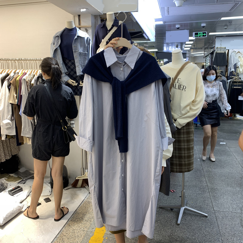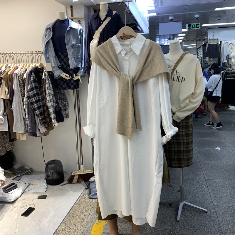 South Korea East Gate Women's Dress 2022 Early Spring New Han Fan Fashion Loose Long Sleeve Single Row of Slit Shirt Long Dress