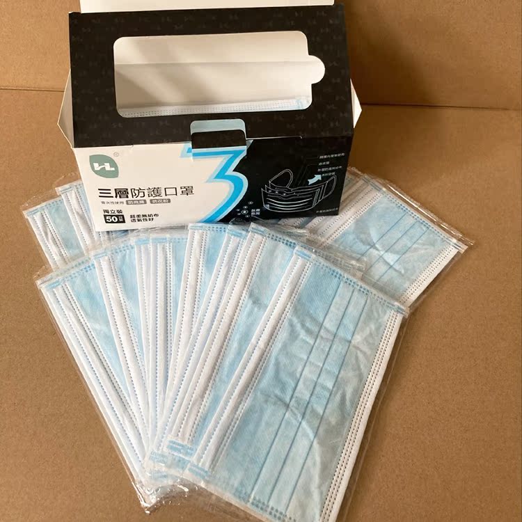 Disposable masks three-layer non-woven meltblown civilian dust-proof anti-bacterial odor blue independent packaging