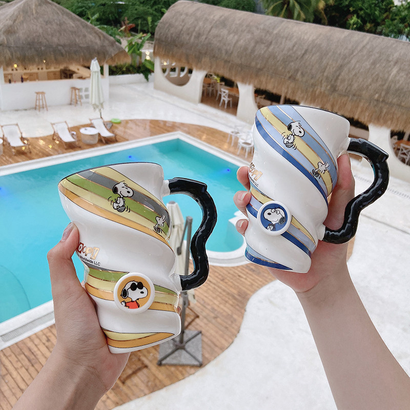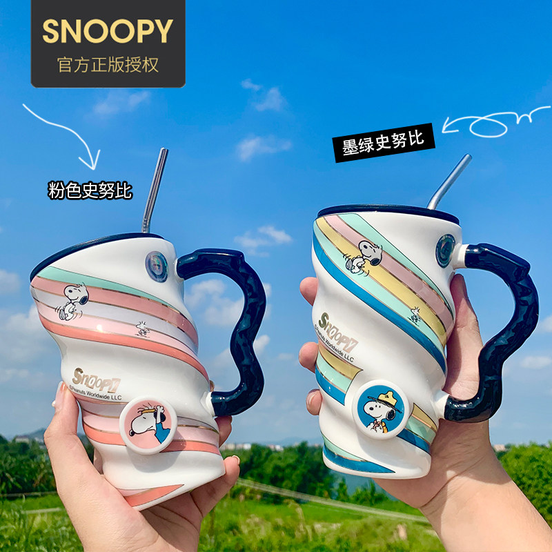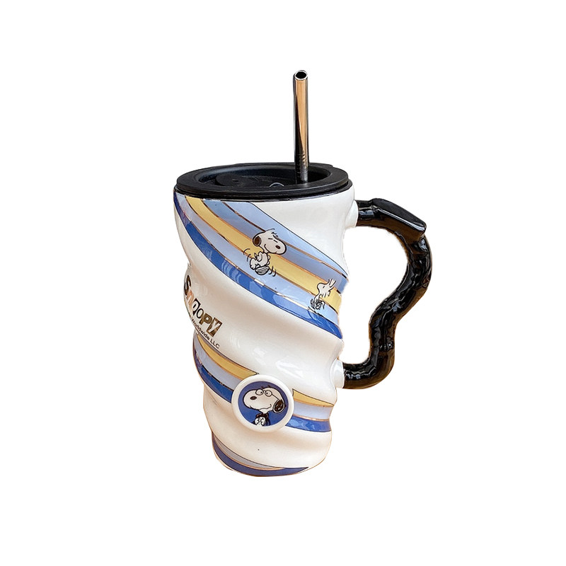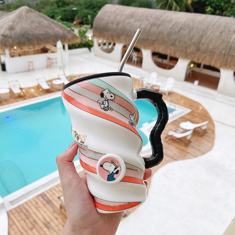 Yulu cute cup creative mug with lid spoon personality couple water cup female ceramic large capacity trend girl