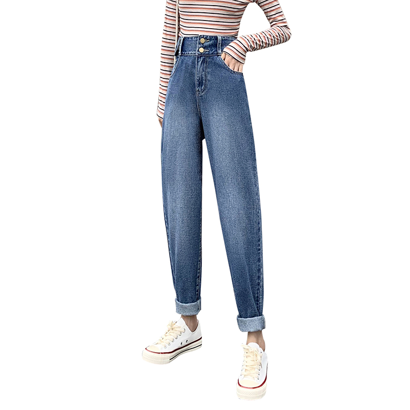 Jeans women straight loose autumn 2021 new high waist deep blue wide leg radish super thin dad pants