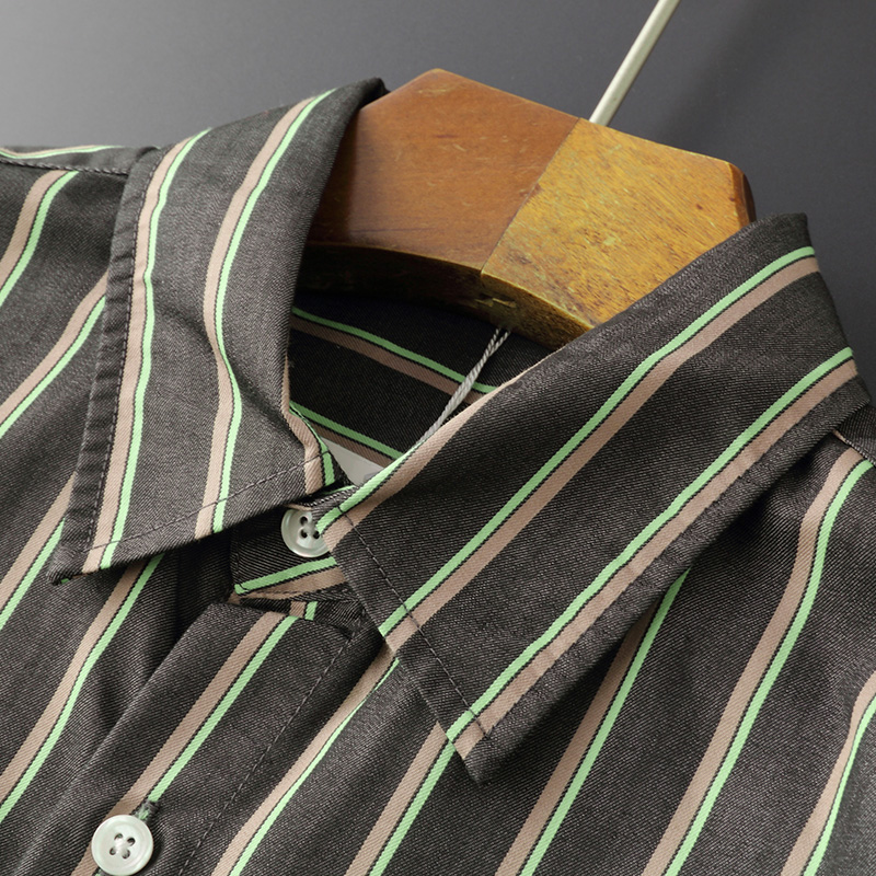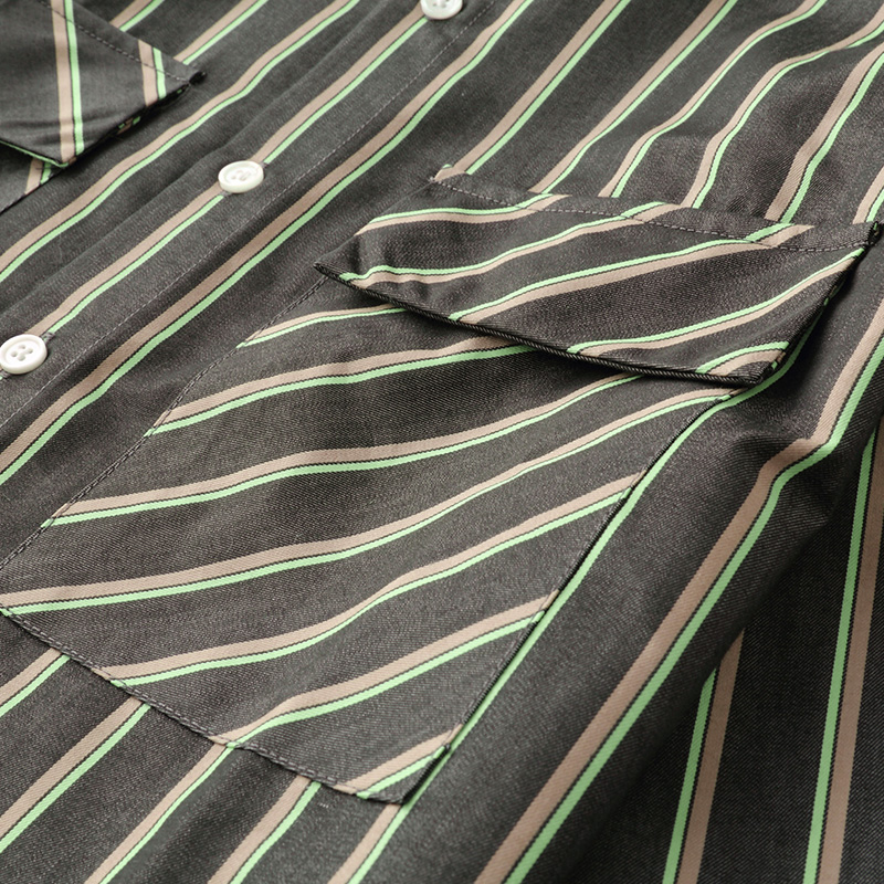 Japanese Fashion Double Pocket-over-tapped Colored Strip Men Long-sleeved Shirt Costume