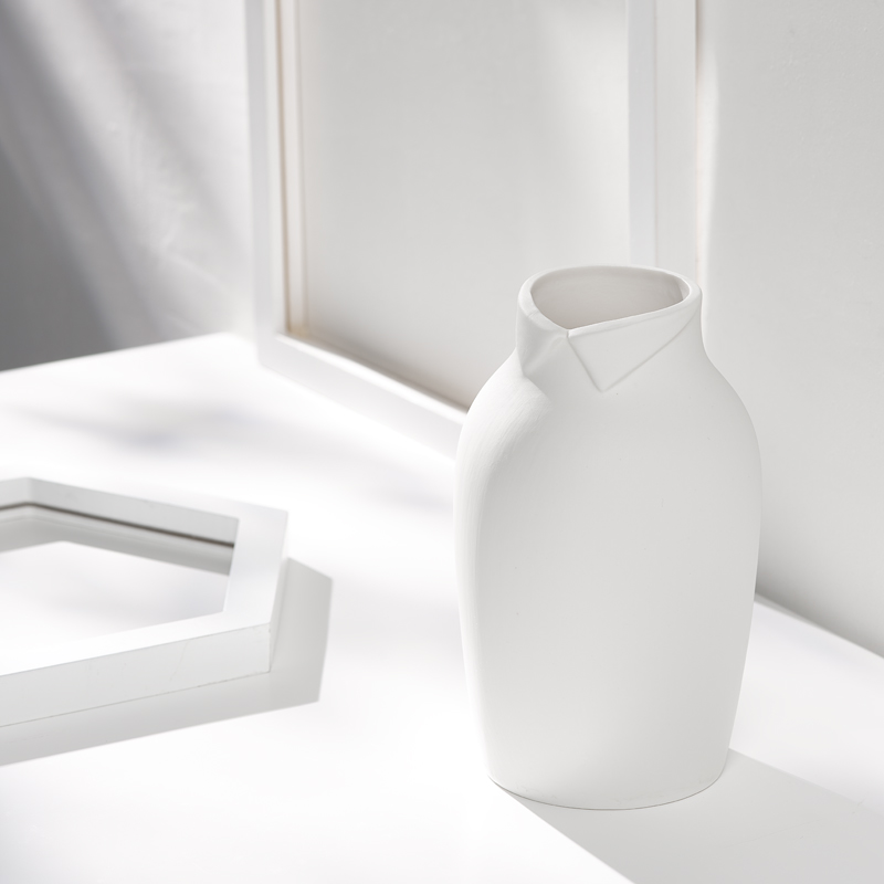 Simple creative white ceramic dry vase water maintenance Nordic home decoration living room full of star furnishings three pieces