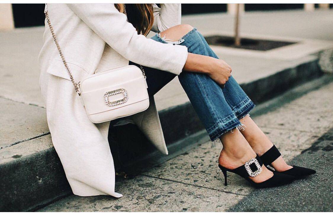 roger vivier spring light blue drill buckle satin pointed high-heeled shoes domestic spot