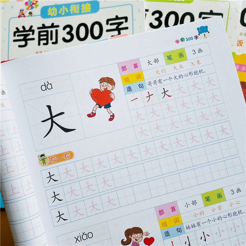 Children preschool 300 words Kindergarten Chinese characters sketch red Ben 3-6 year old class beginners students practice writing copybook full set