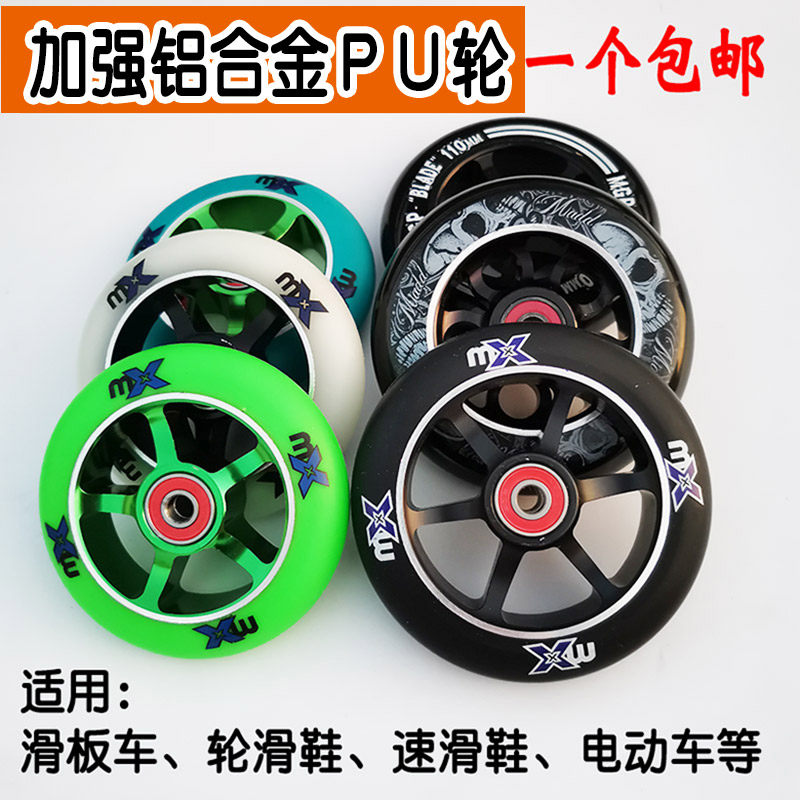 White MX100mm aluminum core wheel green MX100mm aluminum core wheel black and white Xelo-100mm aluminum core wheel black and white green word Xelo-100mm aluminum core wheel black and blue