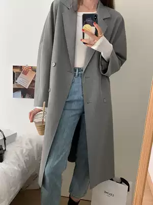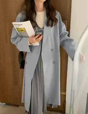(Limited time 8fold) temperament lapel arch needle craft profile double-breasted long version of suit windbreaker F0803