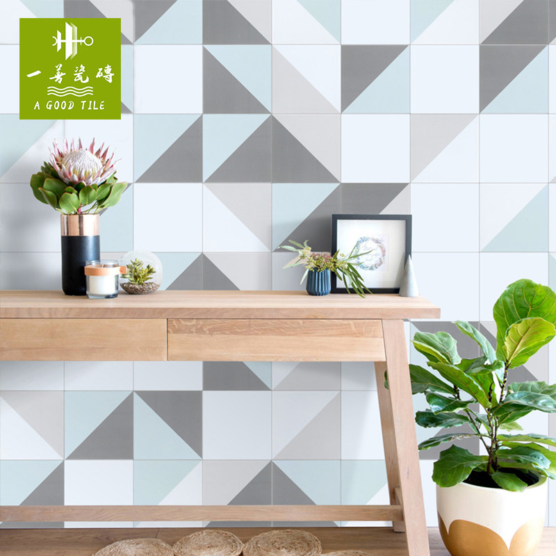 One Good Nordic Green Geometric Retro Brick Balcony Bathroom kitchen Floor Tiles Entrance to the family Xuanguan Anti-slip tiles 300